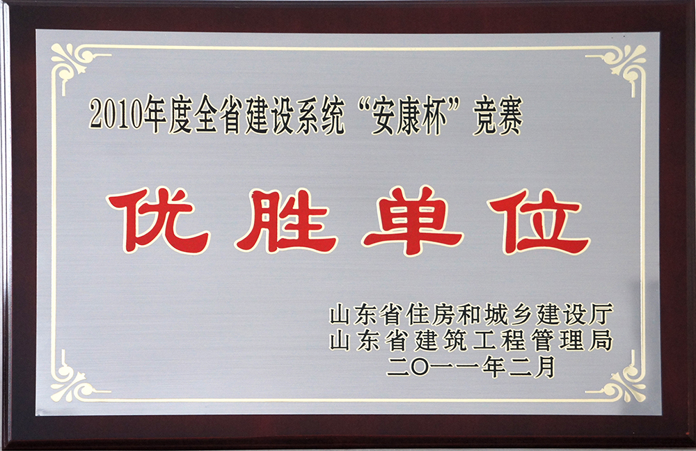 被山東省住房和城鄉(xiāng)建設(shè)廳、山東省建筑工程管理處聯(lián)合評(píng)為2010年度全省建設(shè)系統(tǒng)“安康杯”競(jìng)賽優(yōu)勝單位。