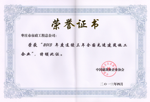 2013年度連續(xù)三年全國先進(jìn)建筑施工企業(yè)