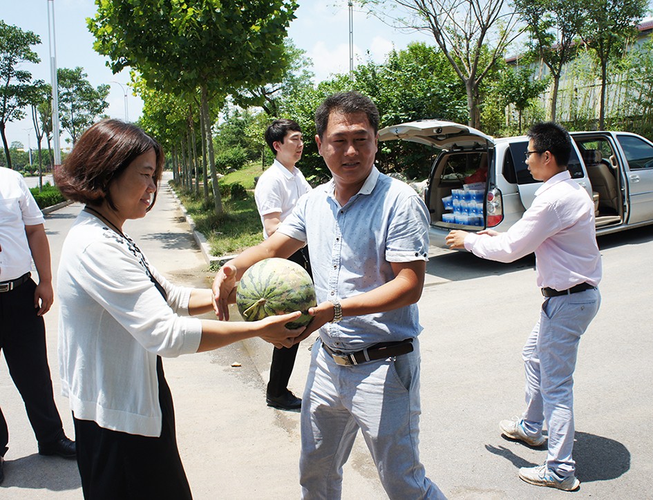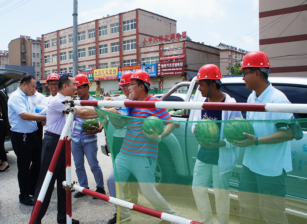 近日我市持續(xù)多日的高溫酷暑天氣,給施工生產(chǎn)一線的相關(guān)部門帶來了嚴峻的考驗。7月7日,在公司黨總支書記、常務(wù)副總經(jīng)理夏士泉的帶領(lǐng)下,公司工會、行政部、人企部等部門人員組成慰問組,代表公司高層深入一線走訪慰問。為烈日酷暑下奮戰(zhàn)在一線的廣大職工送去了防暑降溫用品,并帶去了公司高層的親切慰問。