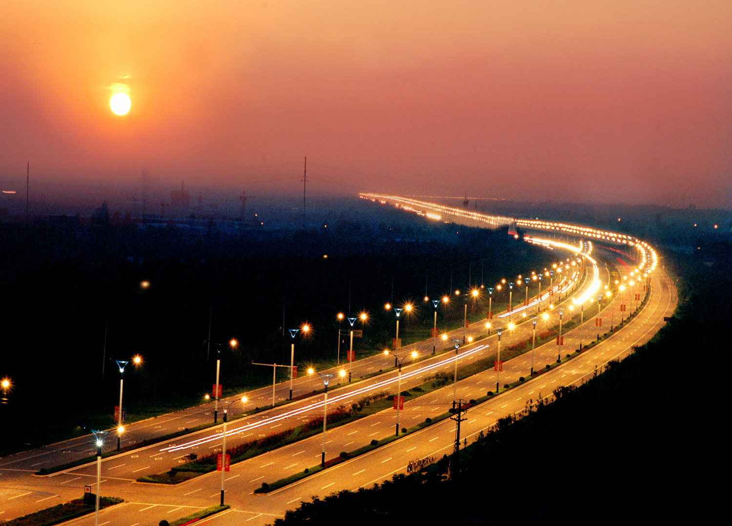 “遠(yuǎn)遠(yuǎn)的街燈明了,好像閃著無數(shù)的明星;天上的明星現(xiàn)了,好像點(diǎn)著無數(shù)的街燈”,光明大道路燈在夜晚就像一座金色的彩橋,照…