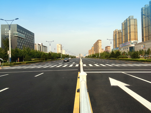 峨嵋山路規(guī)劃為城市次干道,北起黃河路,南至長江路,全長1502.6m。道路平整寬暢,縱貫?zāi)媳?。兩?cè)綠樹叢蔭,生機(jī)勃勃…
